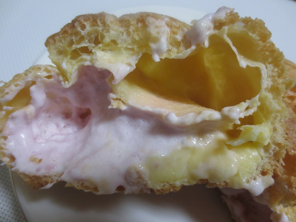 シューの中身は苺のホイップクリームとカスタードクリーム。