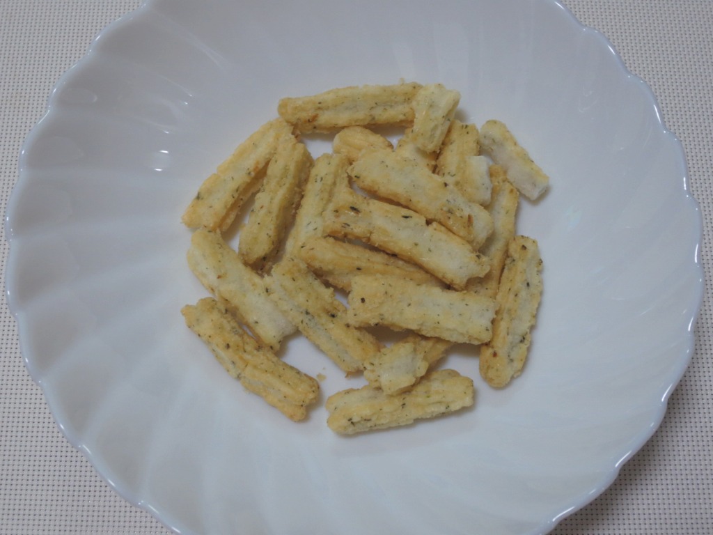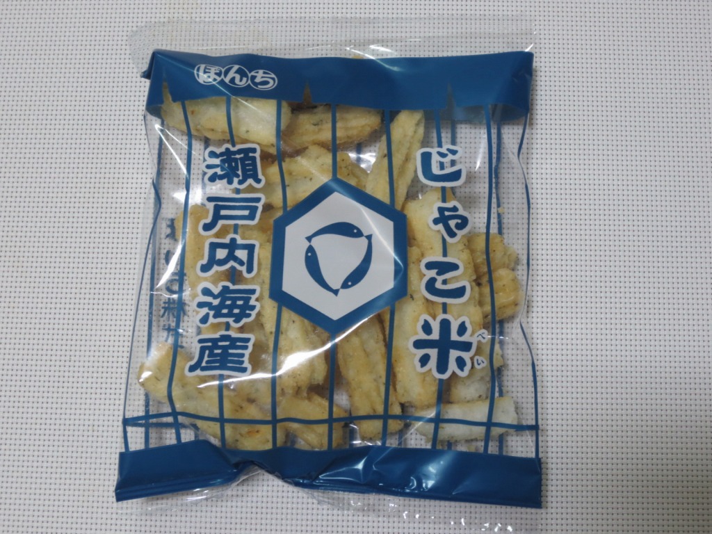 じゃこ米 瀬戸内海産 「じゃこ米」 食べきりサイズが4袋入りです。 じゃことあおさの入ったサクサクの揚げ煎餅です。 磯の香りがよく、じゃこだからカルシウム入りで嬉しいですね。 塩味がちょうどよくて美味しかったです。 カロリー:139kcal(個包装1袋あたり) 内容量:92g 製造者:ぼんち株式会社 購入価格:140円