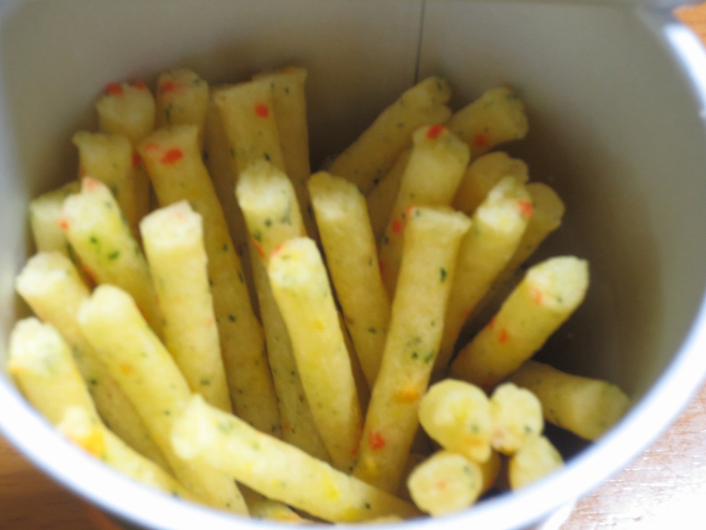 通常サイズのじゃがりこに比べてパッケージは少し大きく、1本の長さが1.2倍位となっています。